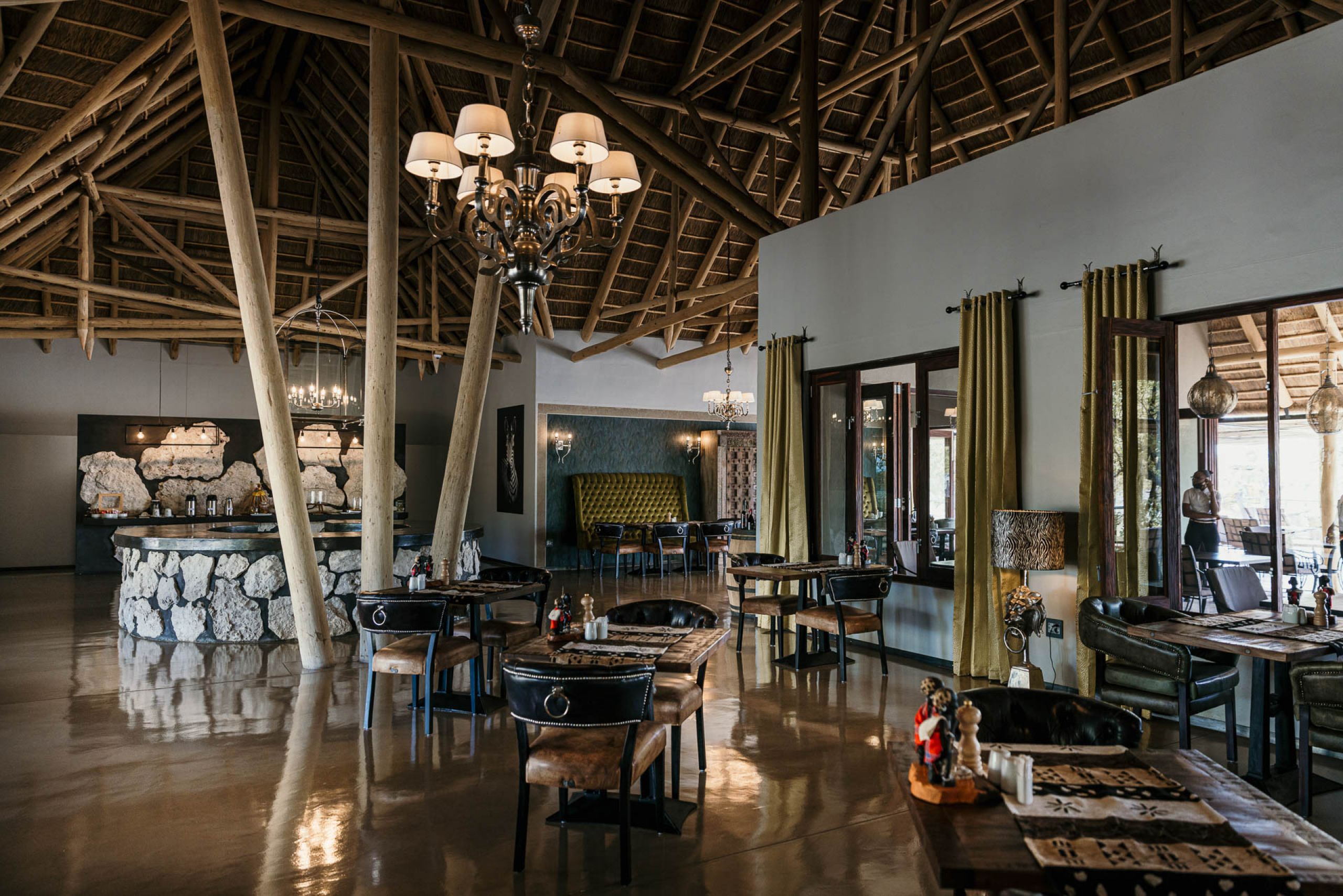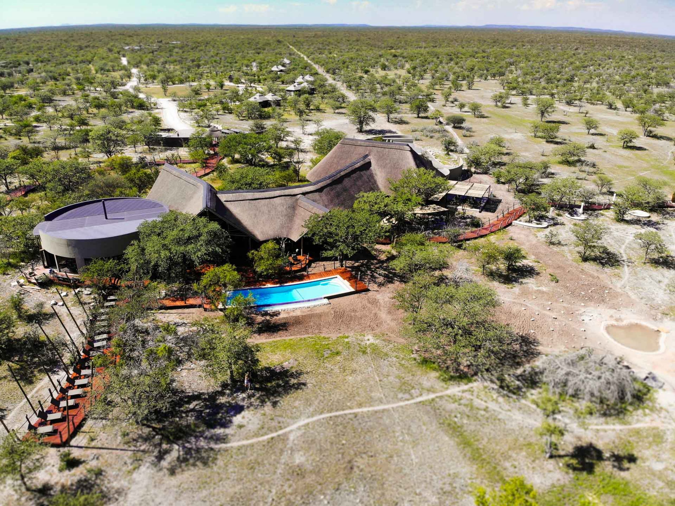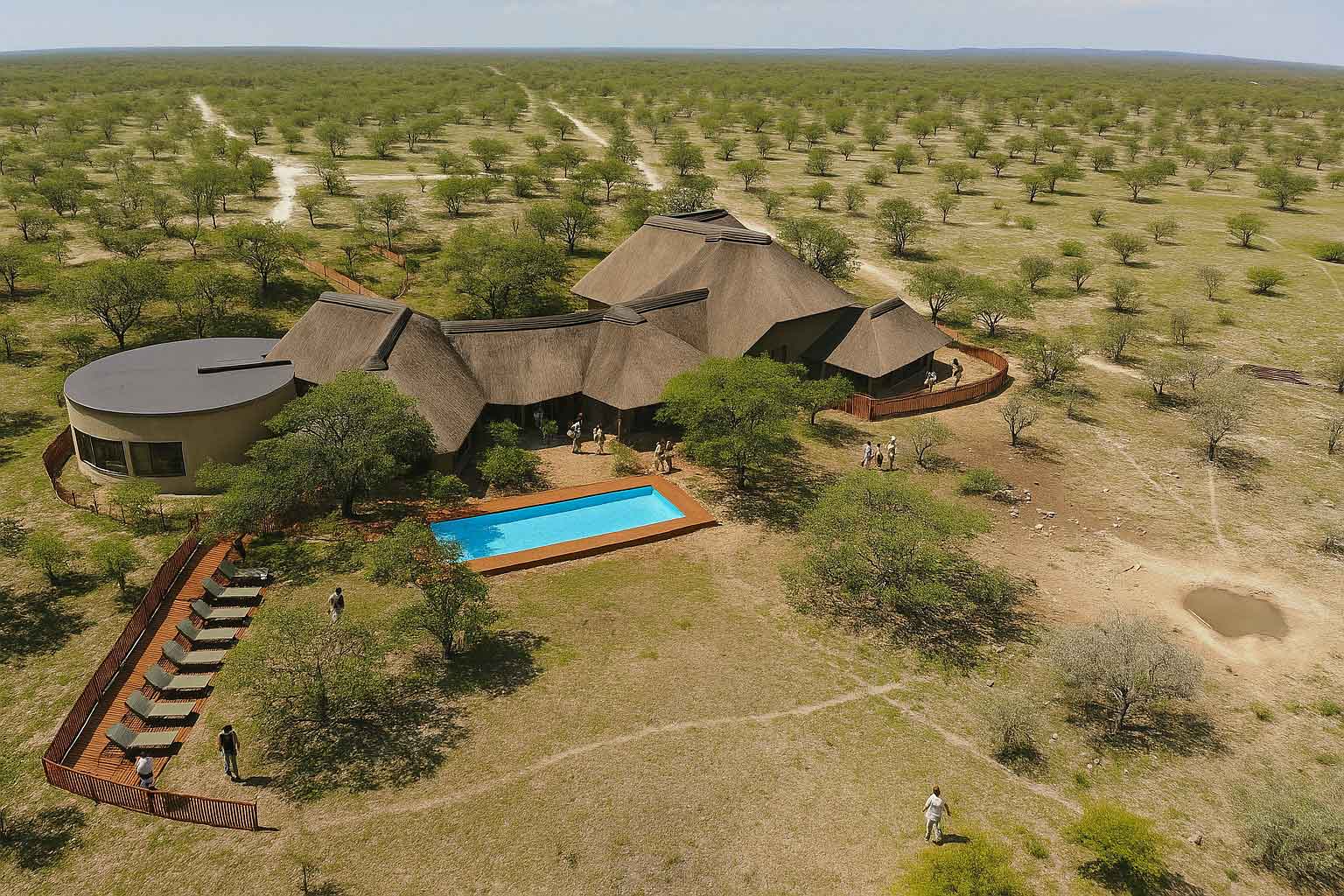 Das von K17 Architekten BDA begleitete Architekturkonzept integriert sich behutsam in die Natur: Das offene Hauptgebäude unter Mopane-Bäumen bietet eindrucksvolle Ausblicke bis zu den Wasserlöchern. Holzstege, ein Infinity-Pool und liebevoll gestaltete Rückzugsorte schaffen eine besondere Atmosphäre.