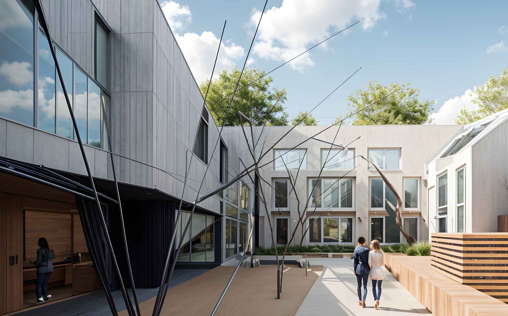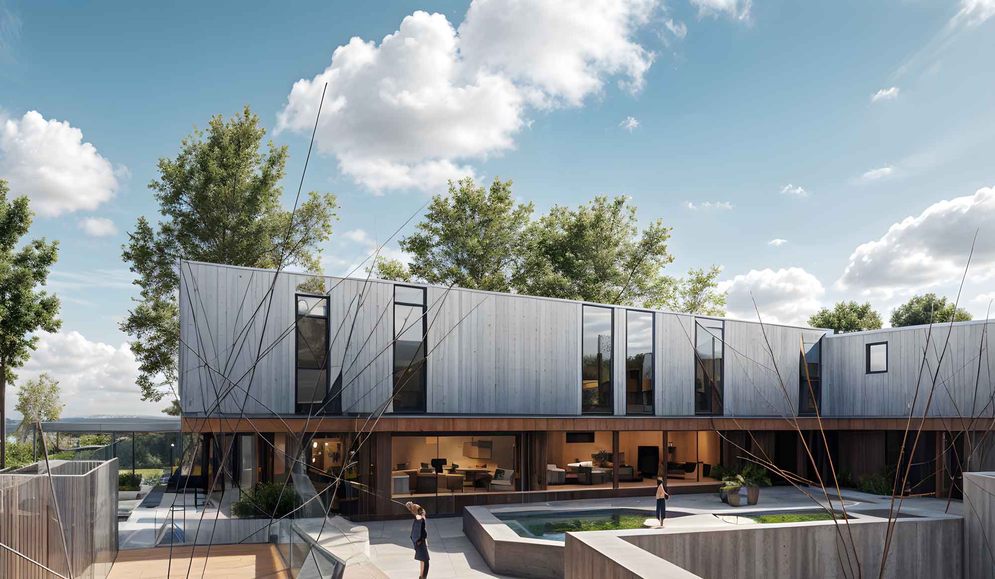 Die architektonische Vision greift den industriellen Charakter der ehemaligen Fabrik auf. Bestehende Strukturen werden respektvoll transformiert und mit großflächigen Verglasungen sowie großzügigen Raumhöhen neu belebt. In den angrenzenden Neubauten findet diese Formensprache ihre zeitgemäße Fortsetzung – mit klaren Linien, urbaner Ästhetik und einem offenen Wohngefühl.