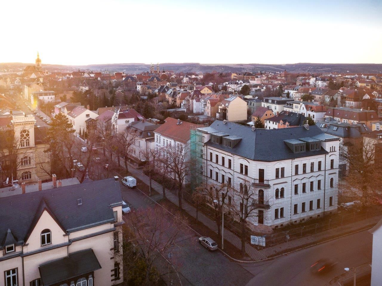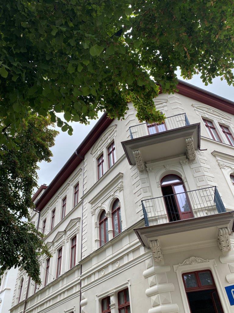 Die vollumfänglichen Sanierungsarbeiten an dem denkmalgeschützten Wohn- und Geschäftshaus G40 (Grochlitzer Straße 40 in Naumburg an der Saale) sind abgeschlossen. Die wertvolle Fassade konnte unter Beachtung der historischen Bausubstanz wiederhergestellt werden. Im Inneren sind moderne, barrierefreie Wohnungen mit besonderem Charme entstanden. Neben einem Personenaufzug wurden Balkone und Dachgauben hinzugefügt.