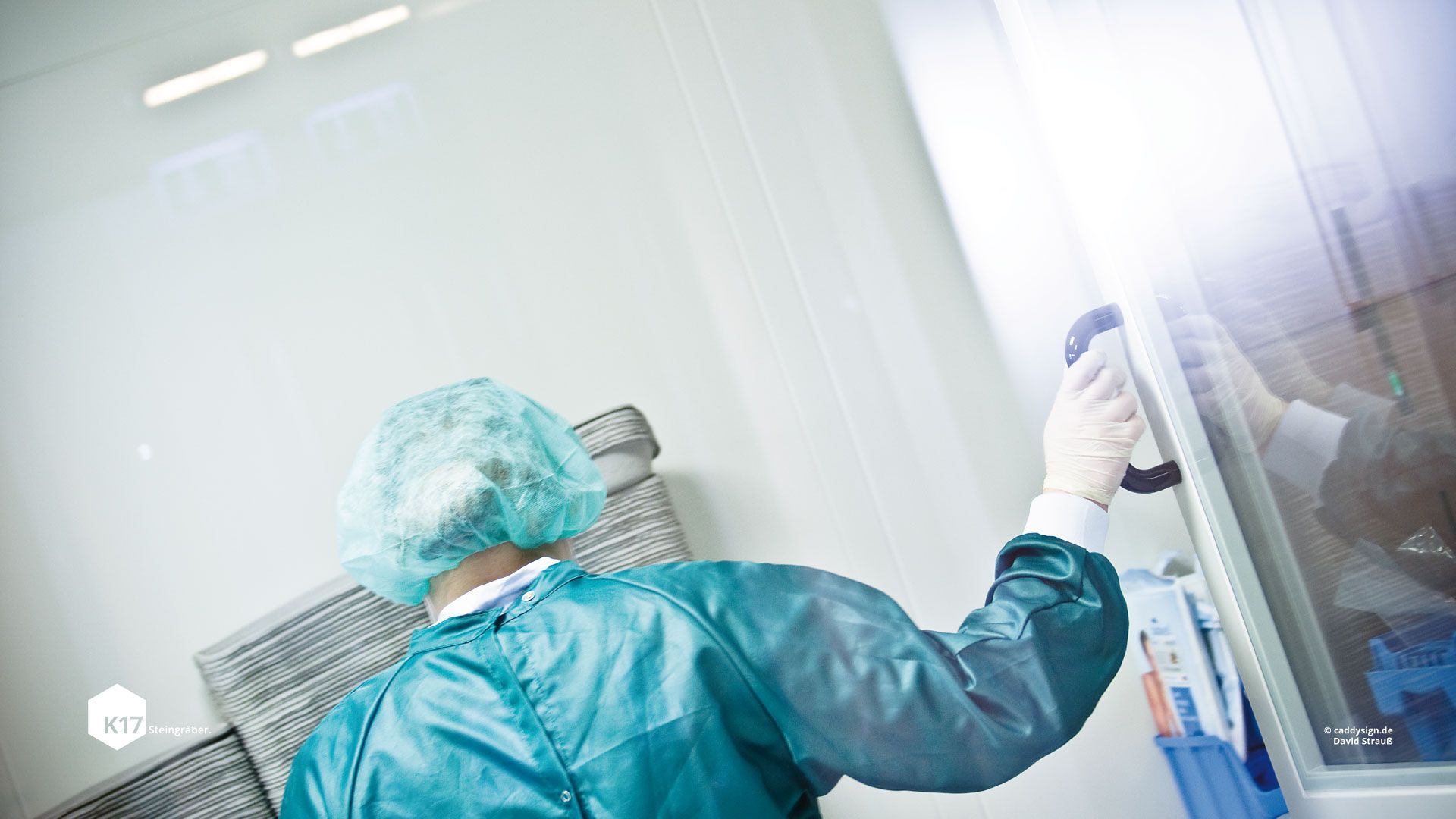Der Erweiterungsbau beherbergt neben einem Reinraum-Labor zur Herstellung von Medikamenten, diverse Verwaltungsräume sowie einen großzügigen Seminarbereich. In Kooperation mit Fachplanern "Reinraumtechnik" ist der Neubau innerhalb eines Jahres in Betrieb gegangen.