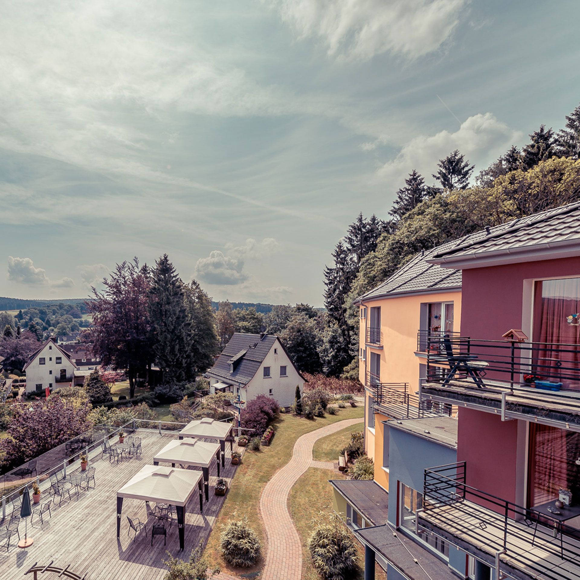 Die U-förmig angelegte, dreiseitig gegliederte Seniorenwohnanlage „Im Alten Dorf“ in Dransfeld vereint großzügige Architektur mit einem durchdachten Wohnkonzept für ein komfortables Leben im Alter.
